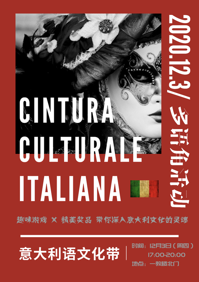12月3日,由西方语系意大利语专业承办的SISU多语种文化带之“意大利语角”活动在松江校区一教楼北门厅成功举办。本次活动由意大利语专业负责人王建全统筹、专业教师黄丽媛带队,一至三年级本科生精心准备、积极参与,吸引了众多学生前来体验和感受热情奔放的意大利语语言文化。