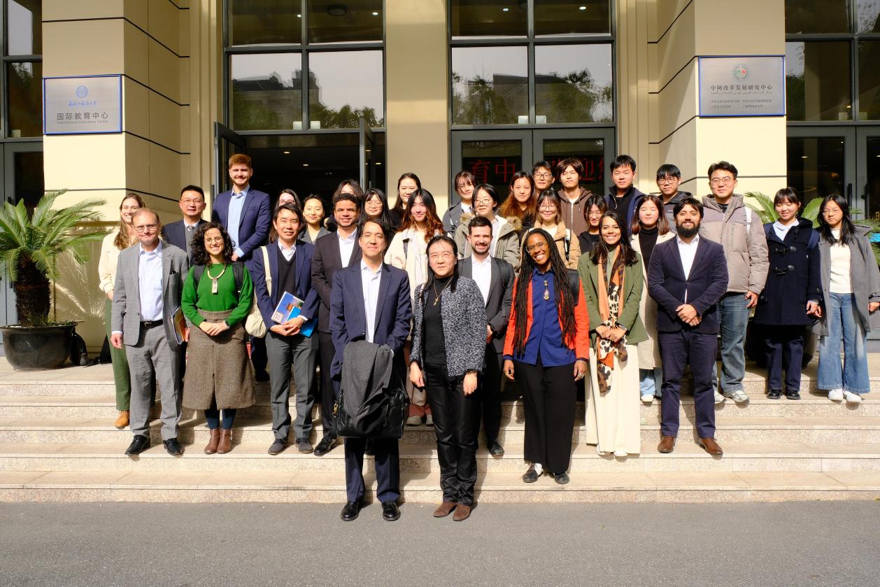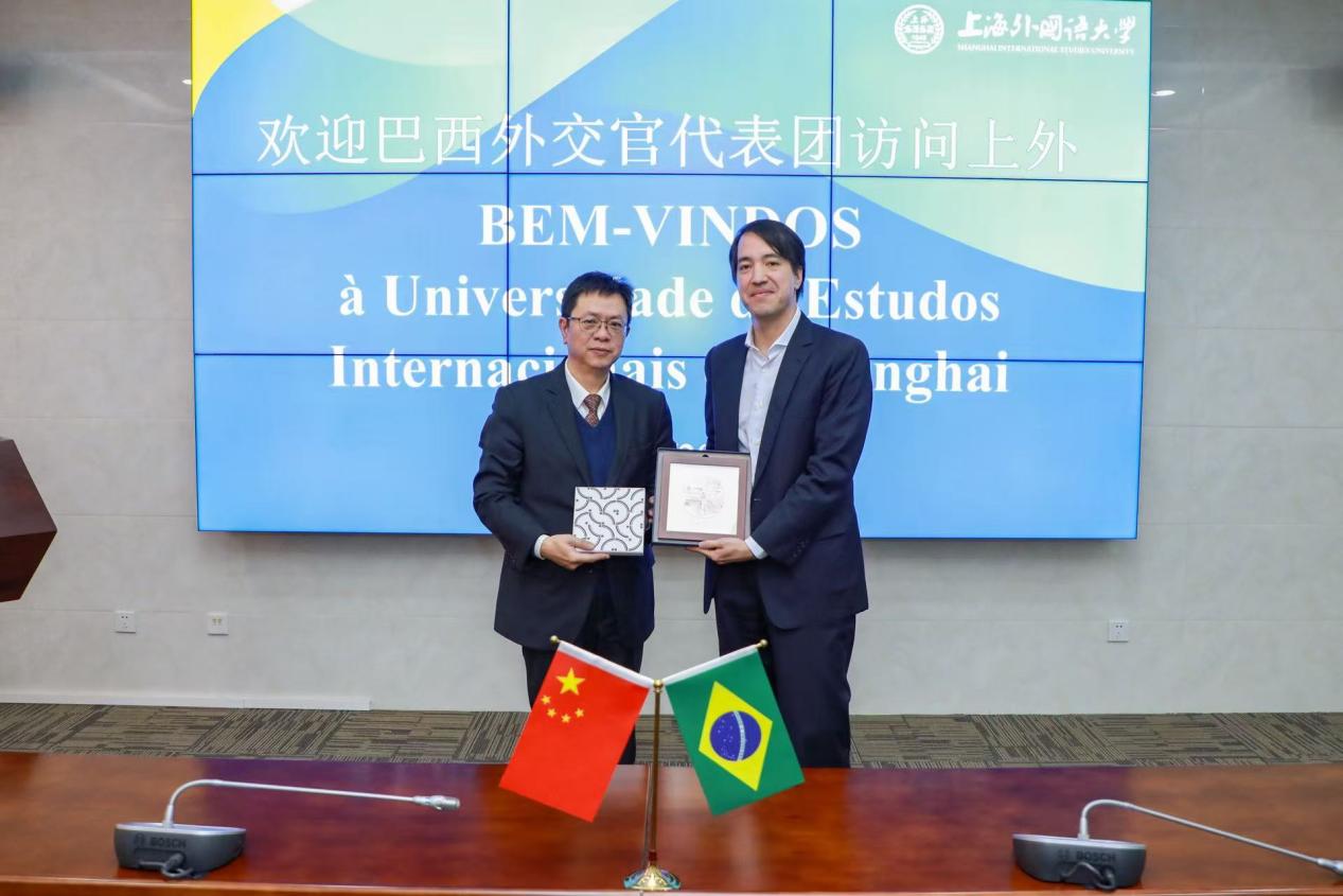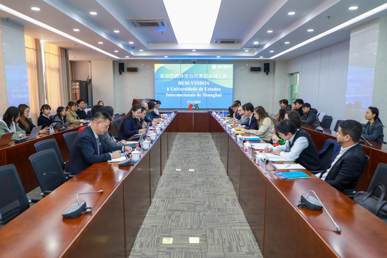 2025年11月27日上午,巴西青年外交官代表团访问上海外国语大学松江校区,了解学校在葡萄牙语教育、中外合作交流等方面的情况,并与上外师生开展座谈交流。上海外国语大学校长李岩松、外交部拉美司参赞朱松华、上海市外办美洲处副处长廉颖飞会见了来宾。
