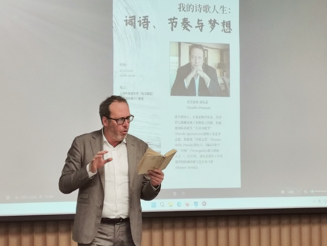 12月10日,“我的诗歌人生:词语、节奏与梦想”主题交流活动在上海外国语大学西方语系成功举行。活动由西方语系与意大利驻沪总领事馆文化处联合举办,特邀意大利热那亚诗人克劳迪奥·波扎尼(Claudio Pozzani)与意大利语专业师生展开深度对话。
