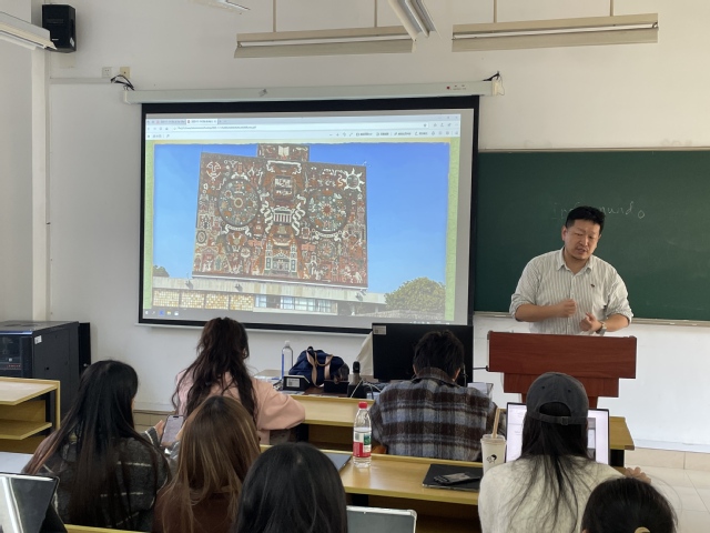 活动以跨学科、多维度视角,帮助师生构建了对墨西哥文化的立体认知。墨西哥国立自治大学米盖尔·安赫尔·伊西德罗教授与校内师生座谈,生动阐释了该国的自然风貌与文化遗产。张礼骏老师从墨西哥土著神话中的隐喻与象征入手,引领听众深入阿兹特克人的精神世界,为学生理解墨西哥文化根基提供了钥匙。闵捷老师则从丝路学视域下的全球性与多样性角度出发,梳理了文化遗产概念的发展历程与丝路学的演进脉络。