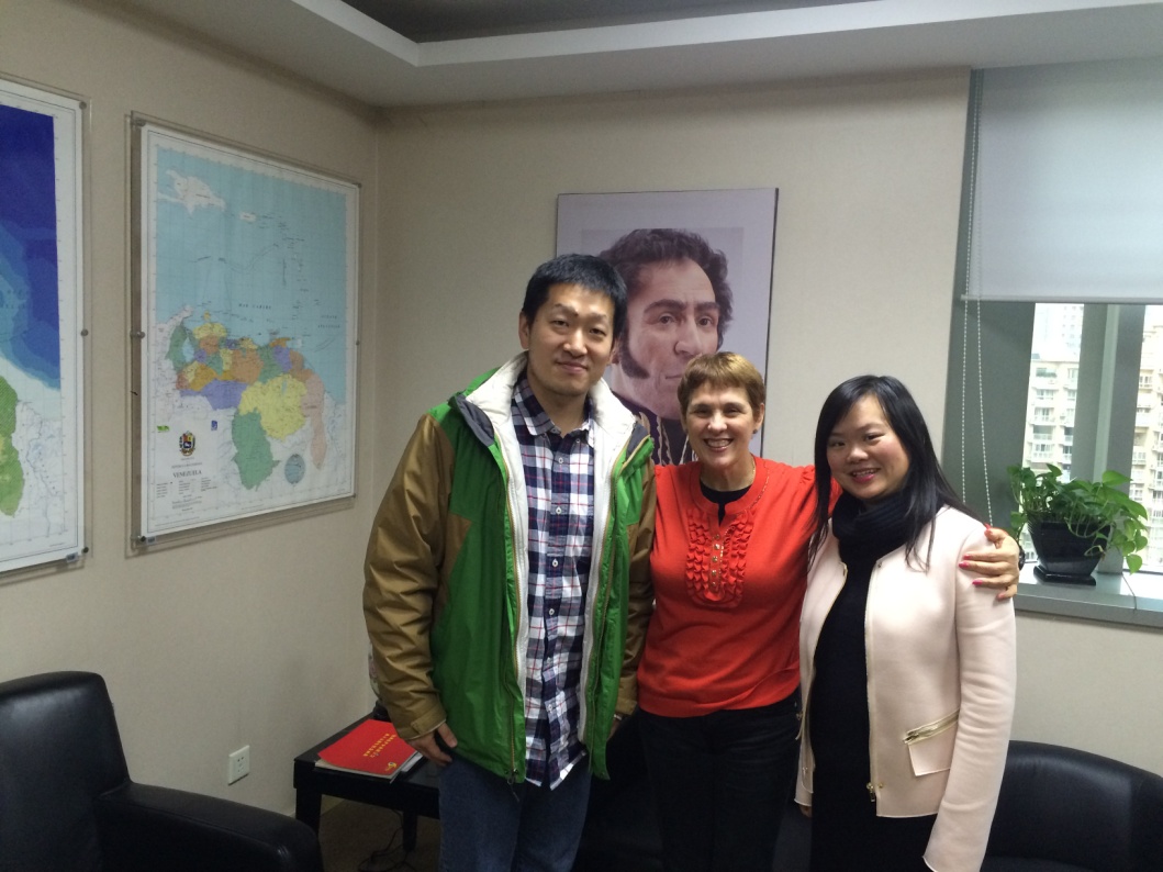 2015年11月25日,西方语系副主任杨明老师及陈芷副教授拜访了委内瑞拉玻利瓦尔共和国驻上海总领事Leisbeth Berríos León 女士,双方就中国文化走出去以及中委双边交流进行了亲切的交谈。Berríos女士还亲笔书写了圣诞贺卡,向西方语系主任于漫教授表达新年的祝福,并且给系里赠送了最近出版的 《委内瑞拉玻利瓦尔共和国宪法1999》中译本。