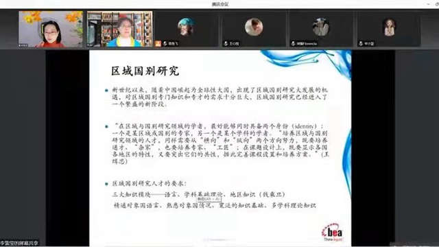 在李紫莹教授深入浅出的精彩讲解后,各位参会者和主讲人进行了热烈的讨论,涉及区域国别领域中的文化研究、外语学科开展区域国别研究的特点以及具体的拉美研究选题等问题。最后,上海外国语大学-西班牙皇家学院联合研究中心学者论坛暨研究生学术训练营系列讲座第四期在参会者的“虚拟掌声”中圆满结束。