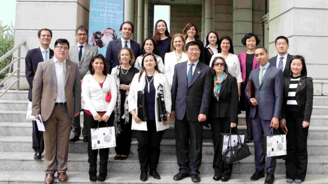 活动开始前,杨校长在图文贵宾厅亲切会见了拉美八国领事。他们是:哥伦比亚驻上海总领事Luz Helena Echeverry,副总领事Camila Gómez Hormaza,智利驻上海总领事 Ignacio Concha,委内瑞拉驻上海总领事Leisbeth Coromoto Berríos León,古巴驻上海总领事Lisbet Quesada Luna,乌拉圭驻上海总领事Leonardo Olivera D’Andrea,秘鲁驻上海副总领事Guillermo Mendoza,厄瓜多尔驻上海副总领事Paola Valverde,阿根廷驻上海总领馆文化领事Javier De Cicco。