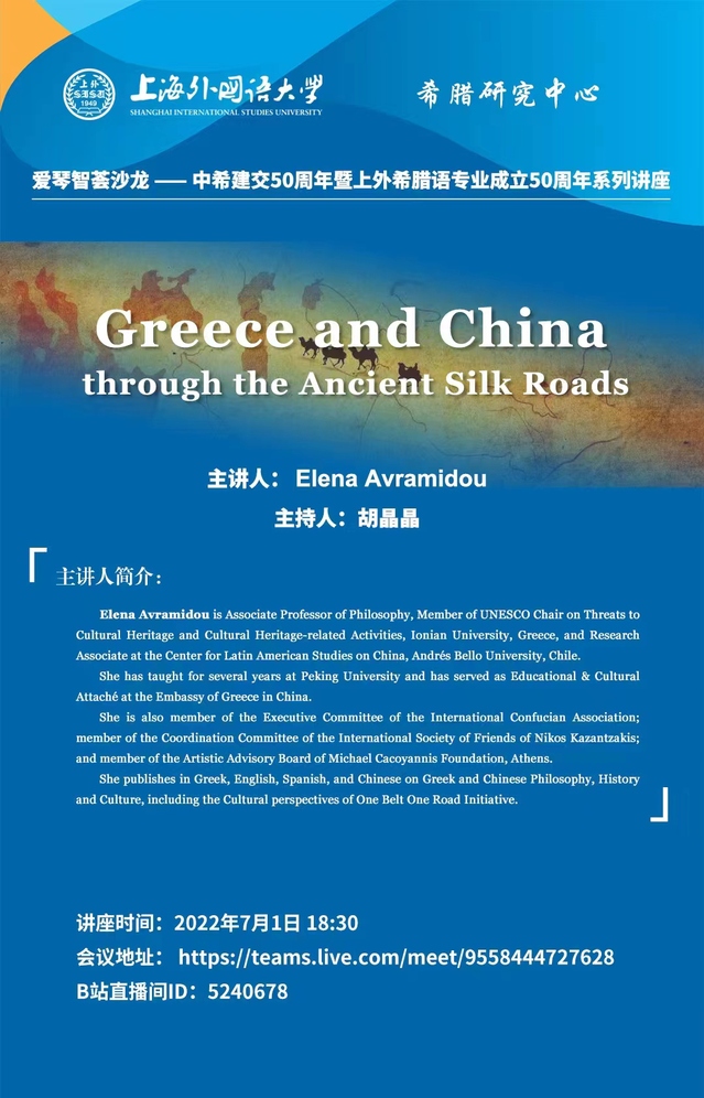 Elena AVRAMIDOU is Associate Professor of Philosophy, Member of UNESCO Chair on Threats to Cultural Heritage and Cultural Heritage-related Activities, Ionian University, Greece, and Research Associate at the Center for Latin American Studies on China, Andrés Bello University, Chile. She has taught for several years at Peking University and has served as Educational & Cultural Attaché at the Embassy of Greece in China.She is also member of the Executive Committee of the International Confucian Association; member of the Coordination Committee of the International Society of Friends of Nikos Kazantzakis; and member of the Artistic Advisory Board of Michael Cacoyannis Foundation, Athens. She publishes in Greek, English, Spanish, and Chinese on Greek and Chinese Philosophy, History and Culture, including the Cultural perspectives of One Belt One Road Initiative.