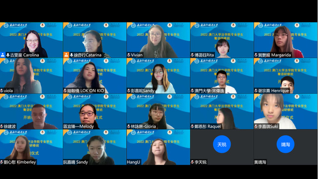 6月20日至7月1日,由我校主办的“港澳与内地高校师生交流计划(‘万人计划’)”——2022澳门大学法学专业学生葡语研修班项目如期举办,西方语系葡萄牙语专业教师团队通过线上课堂教学和座谈交流的形式,与澳门大学法学专业学生在“云端”进行了为期两周的学习与交流。