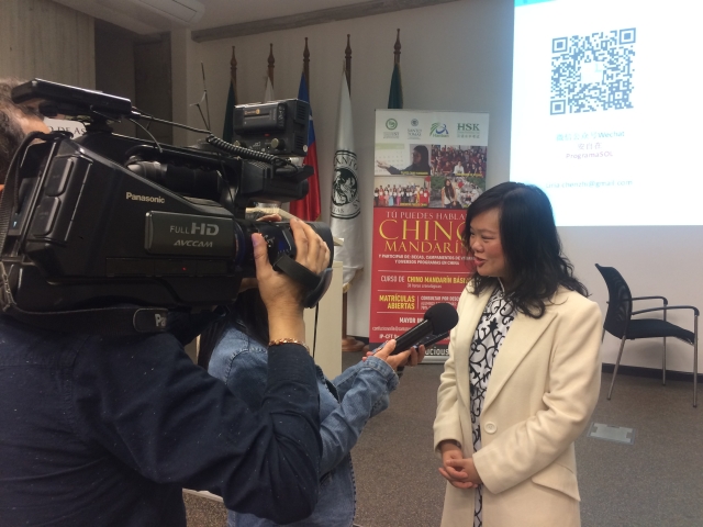 西班牙语专业陈芷老师应国家汉办邀请赴智利开展巡回演讲,介绍中国文化,在此期间适逢十九大顺利召开,陈芷老师第一时间学习会议精神,同步向智利人民传播和讲述十九大概况和中国梦内涵,介绍中国特色社会主义的基本思想和特征、中国的发展现状,以高度的文化自信、过硬的语言功底分享中国故事,让当地民众对中国日新月异的变化有了深入了解。