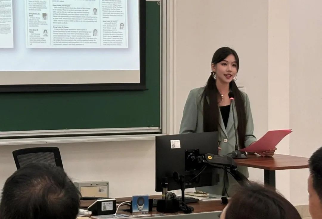关于校名的故事里,一张张照片、一个个数字,引领同学们亲历上外筚路蓝缕、改革创新的发展历史。在关于西方语系的故事里,施老师向同学们讲述了西方语系各专业产生发展的历史、专业设置、教学特色和战略合作伙伴,勉励同学们以热忱之心谋求学之道,笃学慎思、明辨尚行,为未来生涯发展奠定扎实基础。关于师者的故事里,施海倩老师与大家分享了学校名师们的动人事迹。“所谓大学者,非为大楼之谓也,有大师之谓也。”关于理想和信仰的故事里,“年岁迭加并非垂老,理想丢弃方堕暮年”,从抗美援朝前线的“语文工作队”到马列著作“翻译国家队”,从展现青年风采的进博志愿者到大国外交中勇担重任的外交官,一代代上外人薪火相传,将热血和青春融进了祖国的山河。上外应何而生,已在校史中找到了答案。最后一个篇章是关于我们的故事。从非遗记译传,到进博志愿者,从学科竞赛的角逐到国际交流的舞台……当代上外人正续写着振奋人心的故事,而未来新的路途正在每一位上外新人的脚下铺展。