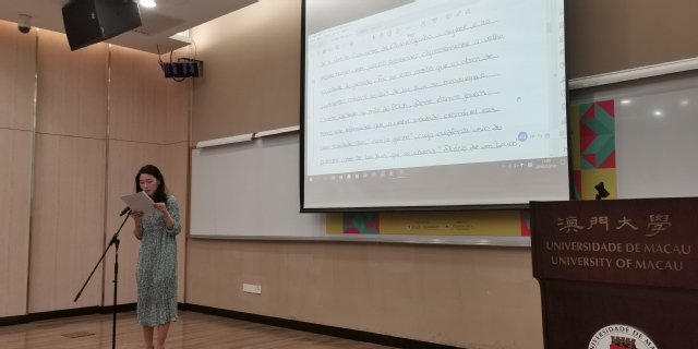 初赛阶段,我校推荐了马星凝、全晨亮参加中译葡组比赛,孙婧、傅瑀何参加葡译中组比赛,四人均获得了决赛资格。四位同学在葡语教研室老师的指导下,经过一个月的积极准备,在1028日于澳门大学举办的决赛赛场上发挥出色、荣获佳绩,马星凝受邀在颁奖典礼上朗读了获奖译文。